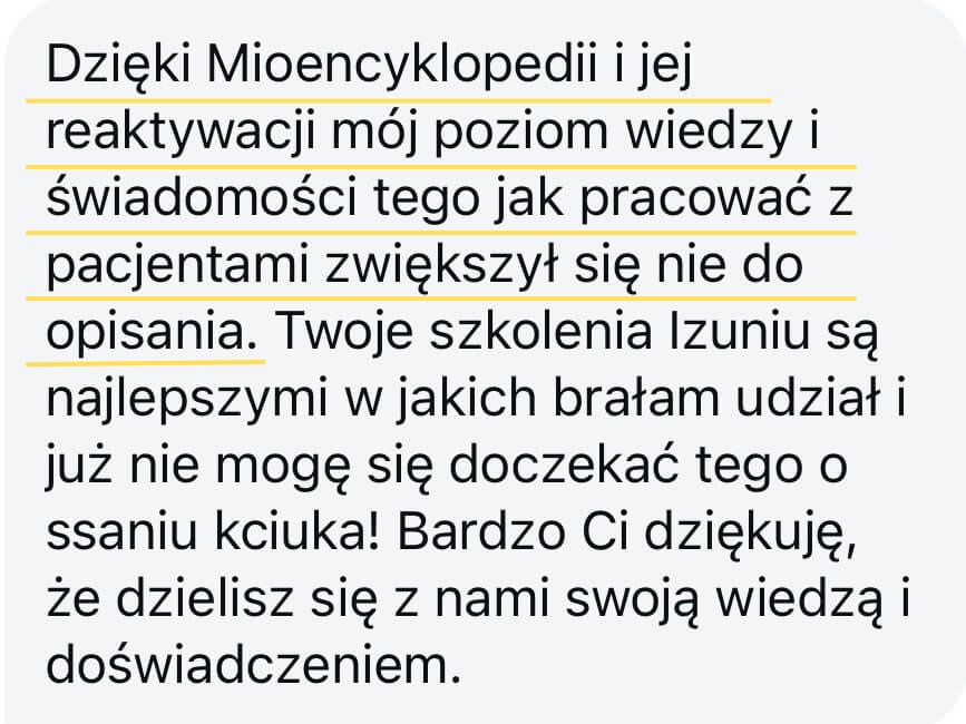Dziś uczę logopedki w całej Polsce, jak pracować klinicznie, świadomie i z pewnością, a Miosfera i programy, które tworzę to przestrzenie, w których mogę przekazać Ci to, co działa w praktyce – zrozumiale, konkretnie i z miłością.